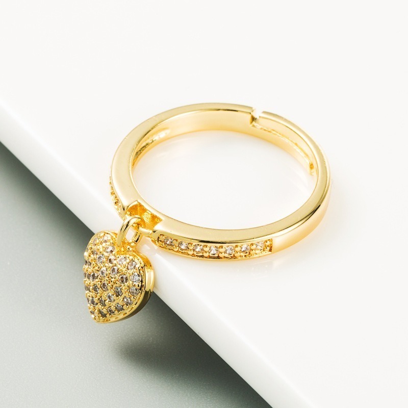 Anillo en cobre con Corazón colgante dorado con circones plateados incrustados  de peso 2gr.