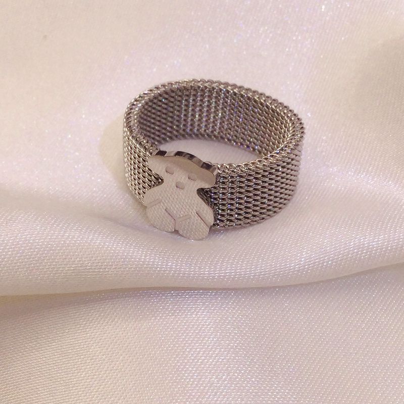 Completa tu estilo con nuestro anillo plateado grueso que presenta la icónica figura de un osito estilo Tous. Este anillo es una declaración de elegancia y ternura al mismo tiempo, ya que combina el diseño moderno con el encanto del osito. El tono plateado le da un toque de sofisticación, mientras que el diseño del osito agrega un toque juguetón. Lleva contigo la esencia de la marca Tous y añade un toque distintivo a tus atuendos con este anillo plateado y atemporal con la figura de un osito.