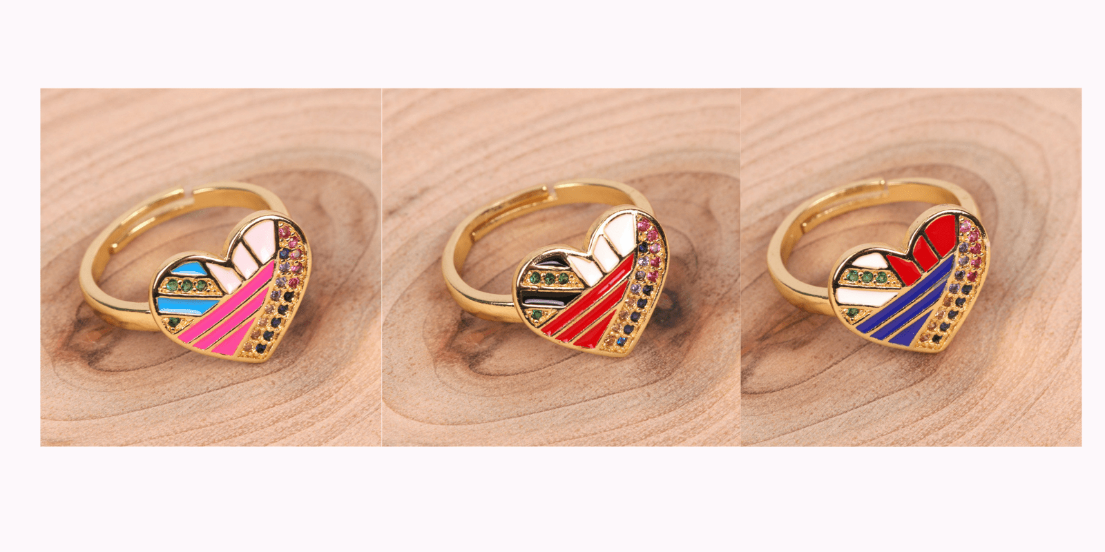 Anillos en forma de Corazón , elaborados en cover gold, disponibles en tres tonalidades con diversidad de colores:
