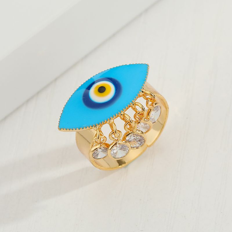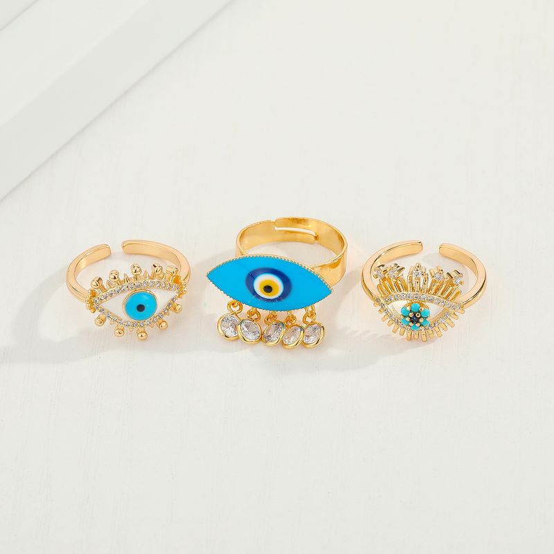 | Diseño | Anillo con microincustaciones colgantes, Anillo ojo aguamarina con pestañas, Anillo ojo turco blanco punticos |