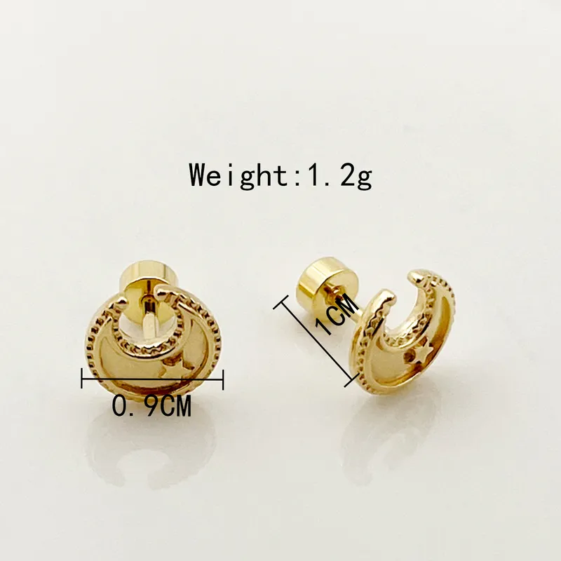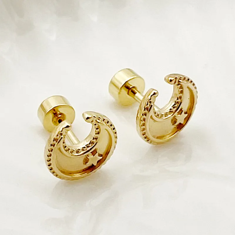 Lleva la magia del cielo en tus orejas con nuestros Aretes Dorados de Luna con Estrella en el Centro. Estos encantadores aretes presentan una luna con una estrella en el centro, creando un diseño celestial y elegante. El tono dorado añade un brillo cálido y sofisticado. Lleva contigo la esencia de la noche y la belleza del cosmos con estos aretes que capturan la conexión entre la luna y las estrellas en un diseño encantador.