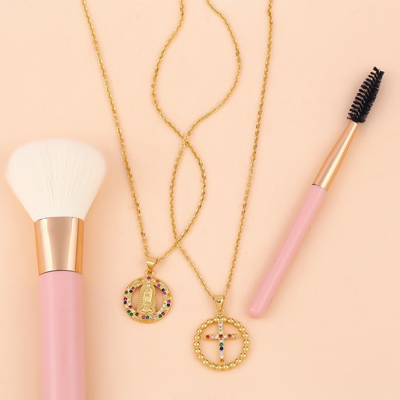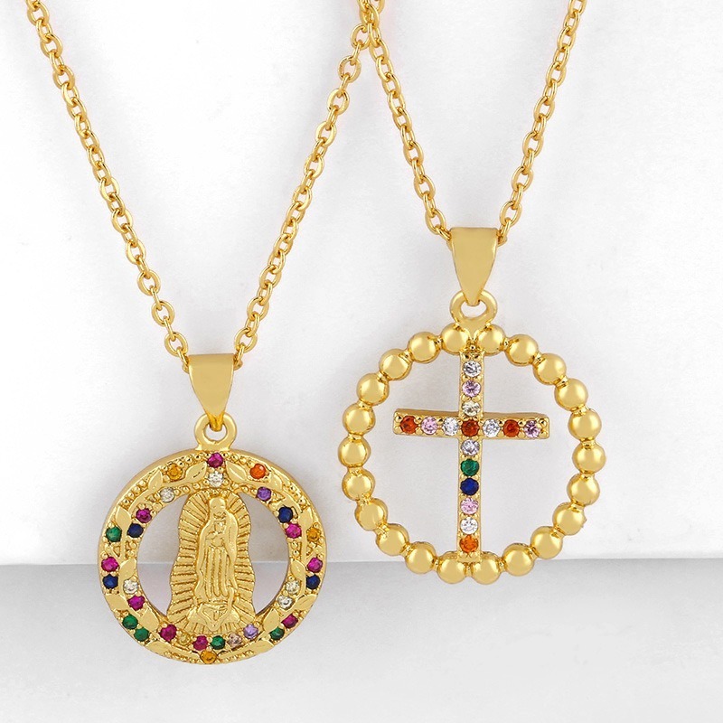 Luce estas divinas cadenitas en Cover Gold cruz y virgen de Guadalupe, para que siempre estés protegida.