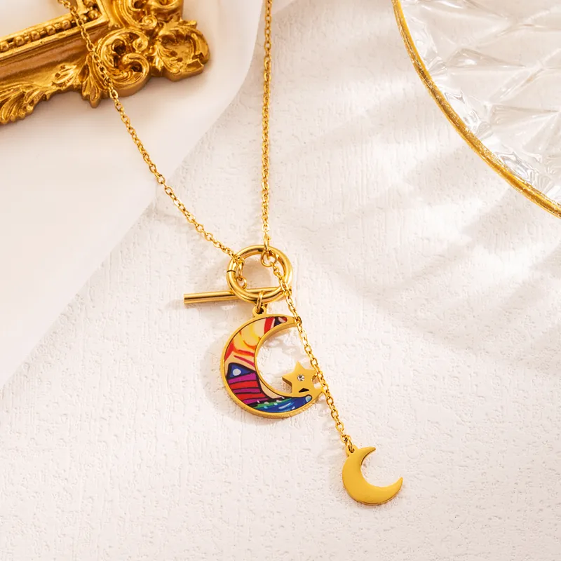 Agrega un toque mágico y encantador a tus accesorios con nuestra «Cadenita de Broche Circular». Esta cadena presenta un dije de luna colorida como detalle central, acompañada de una luna pequeña dorada que cuelga, creando un accesorio que combina color y brillo. Lleva contigo la energía lunar y el estilo en cada detalle de esta cadena.