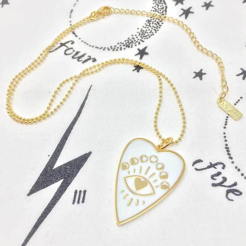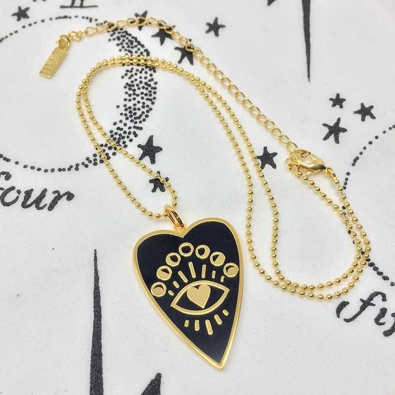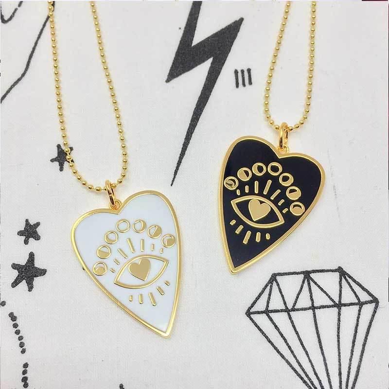 Cadenitas en diseño de corazón negro y blanco con ojo turco pintado a mano en dorado elaborado en oro golfi.