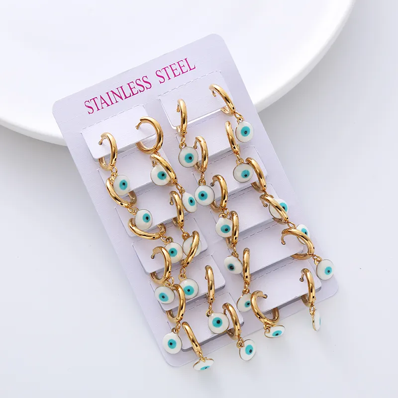 Añade un toque de protección y estilo a tus accesorios con nuestras «Candongas Pequeñas Doradas «.Presentan el icónico ojo turco en tonos azul celeste y blanco en un fondo dorado, creando un accesorio que combina elegancia y simbolismo. Lleva contigo la energía protectora y la belleza en cada detalle de estas candongas. Precio por par.
