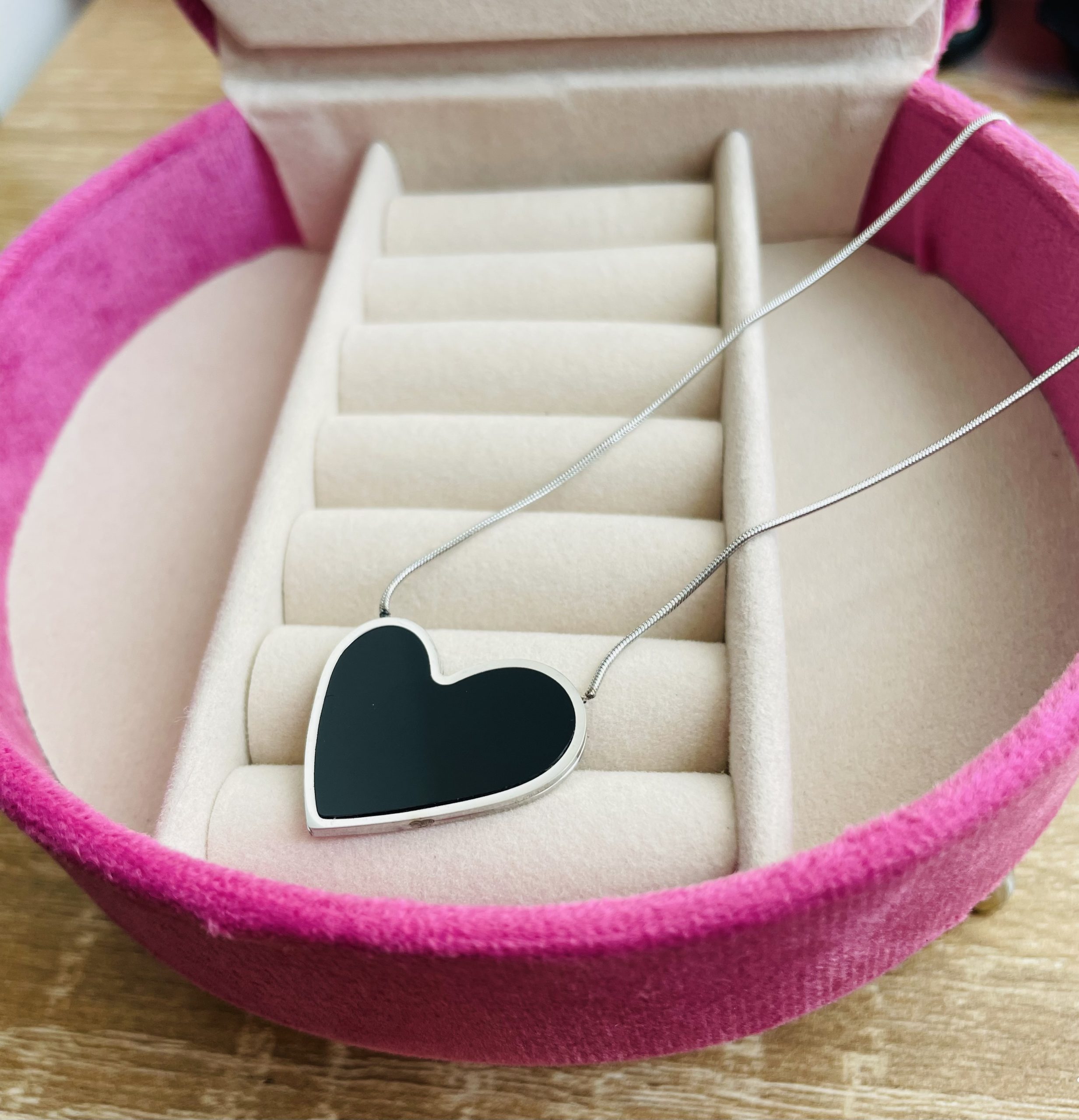 Emana elegancia con nuestro Collar de Corazón en tono negro. Este collar presenta un corazón delicado, un símbolo de amor, mientras que el diseño simple y elegante complementa cualquier atuendo. Lleva contigo la esencia del amor y la belleza natural con este collar que refleja tus sentimientos con gracia y estilo.