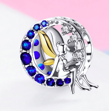 Dije con forma de hada y incrustaciones de piedras semipreciosas ,con contorno de estrellas.