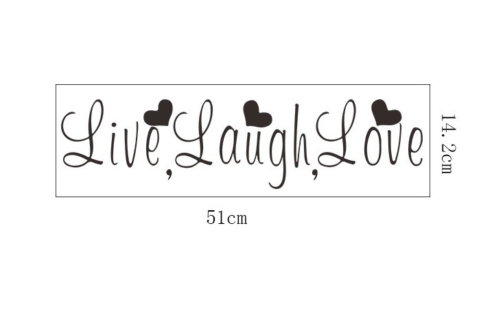 Sticker de pared LIVE-LAUGH-LOVE (las letras vienen con borde blanco) para que decores tu habitación de una manera muy particular, úsalo de dos medidas