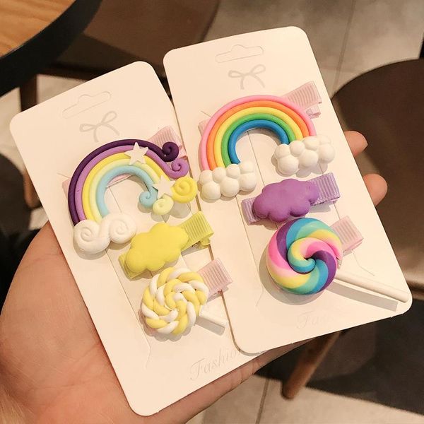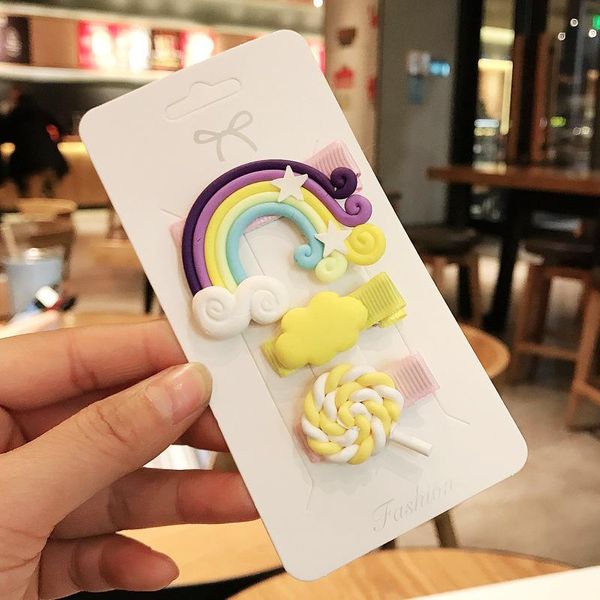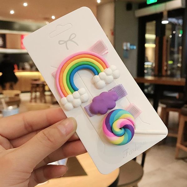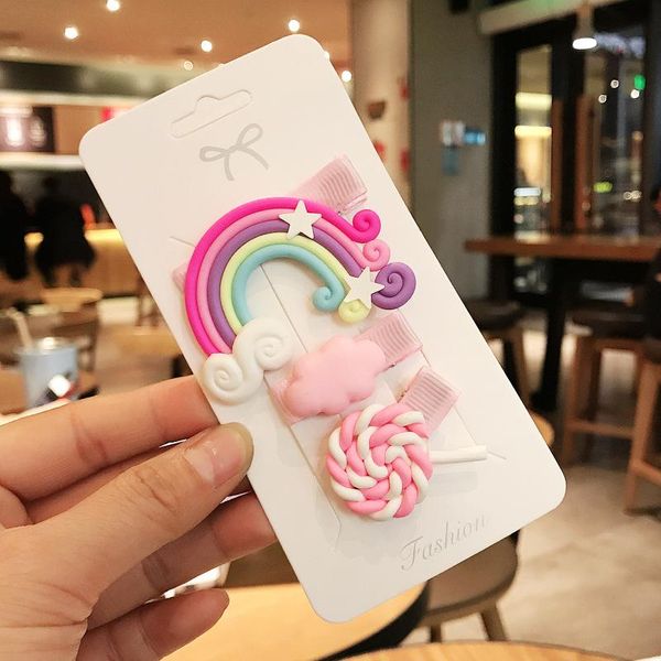 Conjunto de 3 Pinzas para niña figuras de arcoíris y dulces.