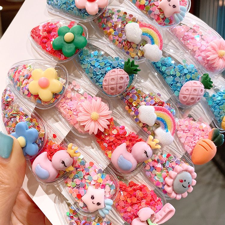 Set de 4 y 5 Pinzas brillantes escarchadas en resina plástica, para las reinitas de nuestro hogar por que ellas tambien pueden verse estupendas siempre.