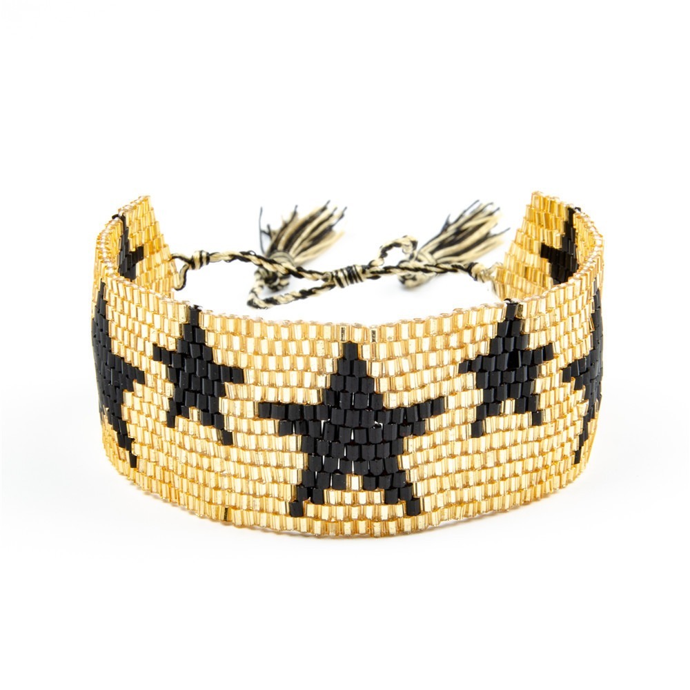 Llena tu vida de la mejor vibra, hermosa pulsera estrella en dos colores negro y dorado elaborada a mano en Miyuki.