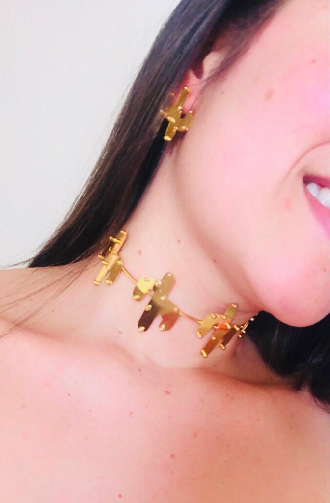 Diseño de Choker 4 cactus con topos en bronce con baño de oro 24k.
