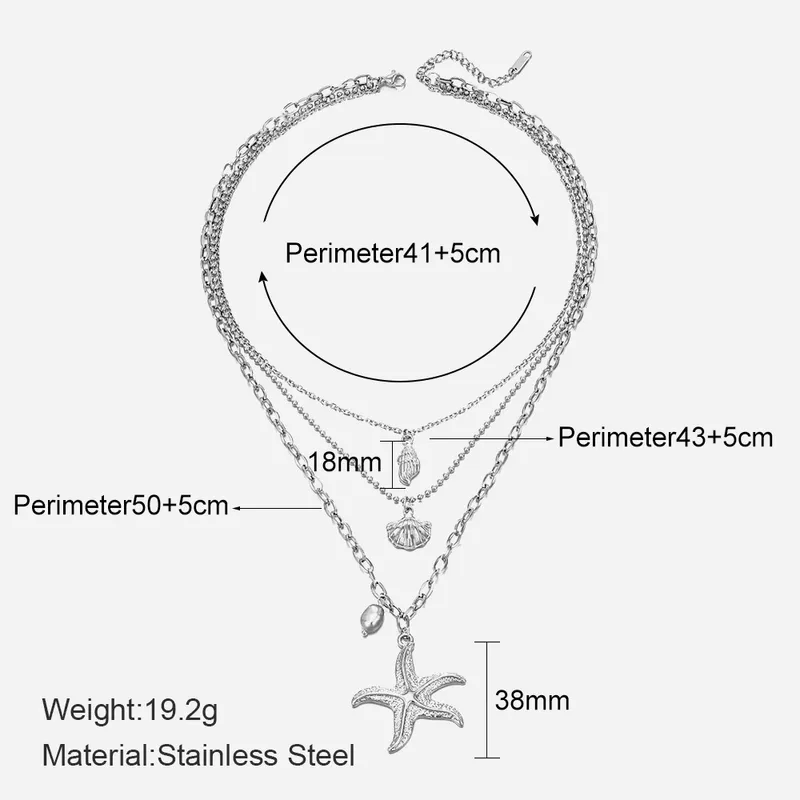 Con una estrella de mar, una perla y dos conchas, cada cadena cuenta su propia historia marítima. Este conjunto es versátil y se adapta a cualquier ocasión, ya sea que quieras llevar las cadenas juntas para un efecto llamativo o usarlas por separado para un estilo más sutil.