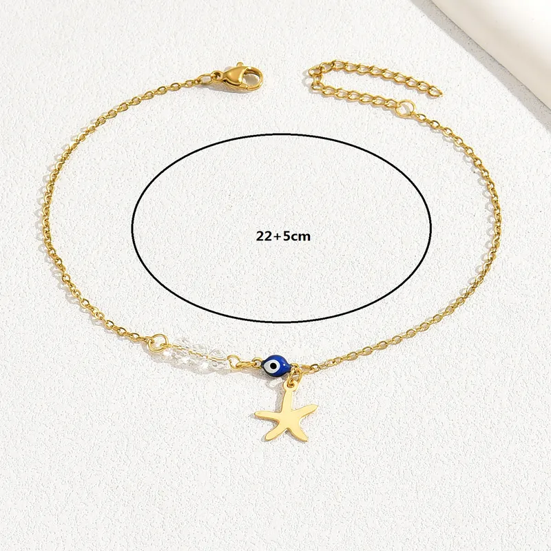 Añade un toque de protección y encanto a tus tobillos con nuestra Tobillera Dorada con una Estrella y un Ojo Turco. Este accesorio combina la belleza del dorado con el simbolismo del ojo turco, que se cree que protege contra las energías negativas. La estrella agrega un toque de magia y guía. Luce esta tobillera para añadir un toque elegante y espiritual a tu estilo.