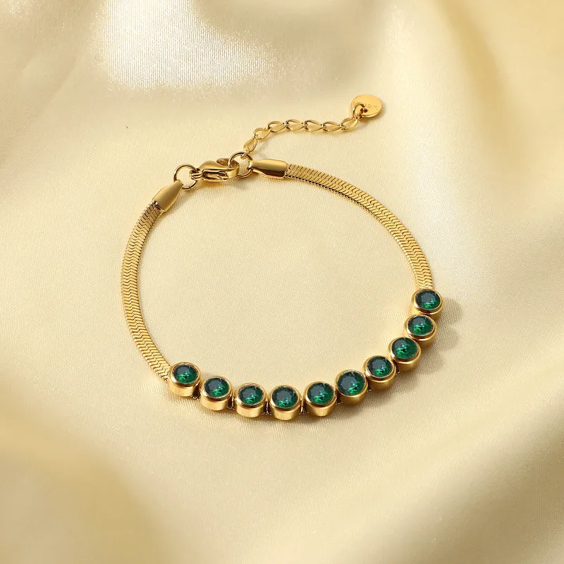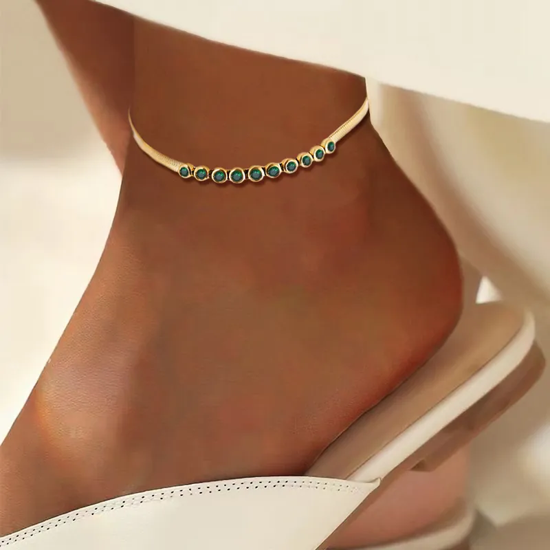 Adorna tus pasos con la elegancia natural de nuestra tobillera «Esmeralda Dorada». Esta tobillera presenta una cadena plana dorada con incrustaciones de piedras semipreciosas en un hermoso tono verde esmeralda. Disfruta de la combinación de la sofisticación del dorado con el encanto de las piedras naturales en esta pieza que te conecta con la belleza de la naturaleza.